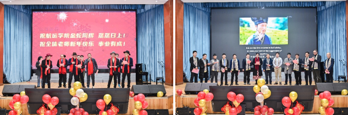 祥蛇献瑞,新元肇始。元月13日下午,学院在天象馆一楼报告厅隆重举办2025年“金蛇狂舞迎新年、踔厉奋发展宏图”新年联欢会。全体教职工及部分近三年退休老师、教职工家属和留校本研学生齐聚一堂,喜迎新春到来。