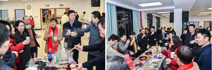 文艺汇演后,进入美食品鉴环节。老师们以自费方式精心准备的美食成为全场亮点,让大家在品尝美味佳肴的同时,共度温馨难忘的美好时光。有腊肉腊肠、糖醋熏鱼、藕汤、酱板鸭、火锅、烤全羊和烤乳猪、三文鱼刺身与龙虾、饺子、蛋糕、披萨……品美食、谈笑间,欢快的气氛感染着每一个人。