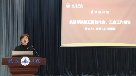 工会主席赵娟娟代表学院工会向大会作《成人影视片 第五届教代会、工会工作报告》,首先回顾了五年来的工作情况,从政治引领、师德师风建设、教学技能培训、制度建设、民主管理、职工福利、文体活动、困难慰问、支持乡村振兴、防疫抗疫工作等方面详细报告相关情况,最后围绕全面提升学院治理质量、效能,提出与时代同频、与学院同步、与职工同向,全面打造学习型、专业型、服务型的“三型”工会组织。