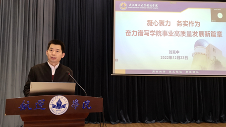 刘克中院长代表学院向大会作《成人影视片 2022年度工作报告》、《2021年学院财务情况报告》和成人影视片 内部管理制度修订说明。刘院长以《凝心聚力 务实作为,奋力谱写学院事业高质量发展新篇章》为题作2022年度工作报告,从党建和思政工作、学院管理、本科教学、研究生培养、科学研究、学生工作、船员培训等7个方面总结了学院2022年度取得的各项成绩。随后根据学院实际,提出2023年学院以“十四五”规划为引领,围绕高质量发展主题,落实立德树人根本任务,坚持固本强基、稳中求进,着力建好人才队伍、建强基层组织、健全管理制度、夯实发展基础的要求,并汇报了2023年五个方面的重点工作。最后刘院长希望全院教职工进一步统一思想、凝聚共识、以更加饱满的热情、更加坚定的信心、更加努力的奋斗,全面完成2023年度目标任务,共同推动学院高质量内涵式发展。