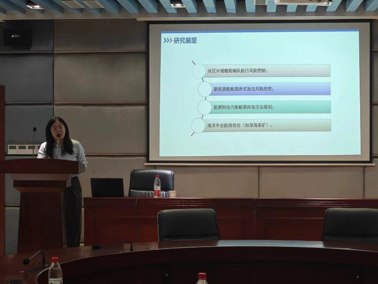 付教授首先对北极航道船舶冰区航行安全的研究背景进行多方面分析,包括国家需求、地区需求、行业需求以及关键问题。随后,付教授详细介绍了其在北极航道船舶冰区航行安全方向的主要研究工作,包括冰区航行风险因素耦合机制、船舶冰区航行事故风险形成机理和冰区航行事故风险防控方法。最后,付教授针对北极冰区船舶航行安全进行了研究展望,包括如何优化北极航行系统、如何解决因北极冰区船舶航行模式多样而导致的事故应急救援能力不足以及如何针对北极冰区航行船舶实施有效的风险预警。付教授的报告不仅展示了其在北极航道船舶冰区航行安全研究领域的深厚造诣,也为与会者提供了一个学习和交流的平台,促进了学院师生的深入探讨。