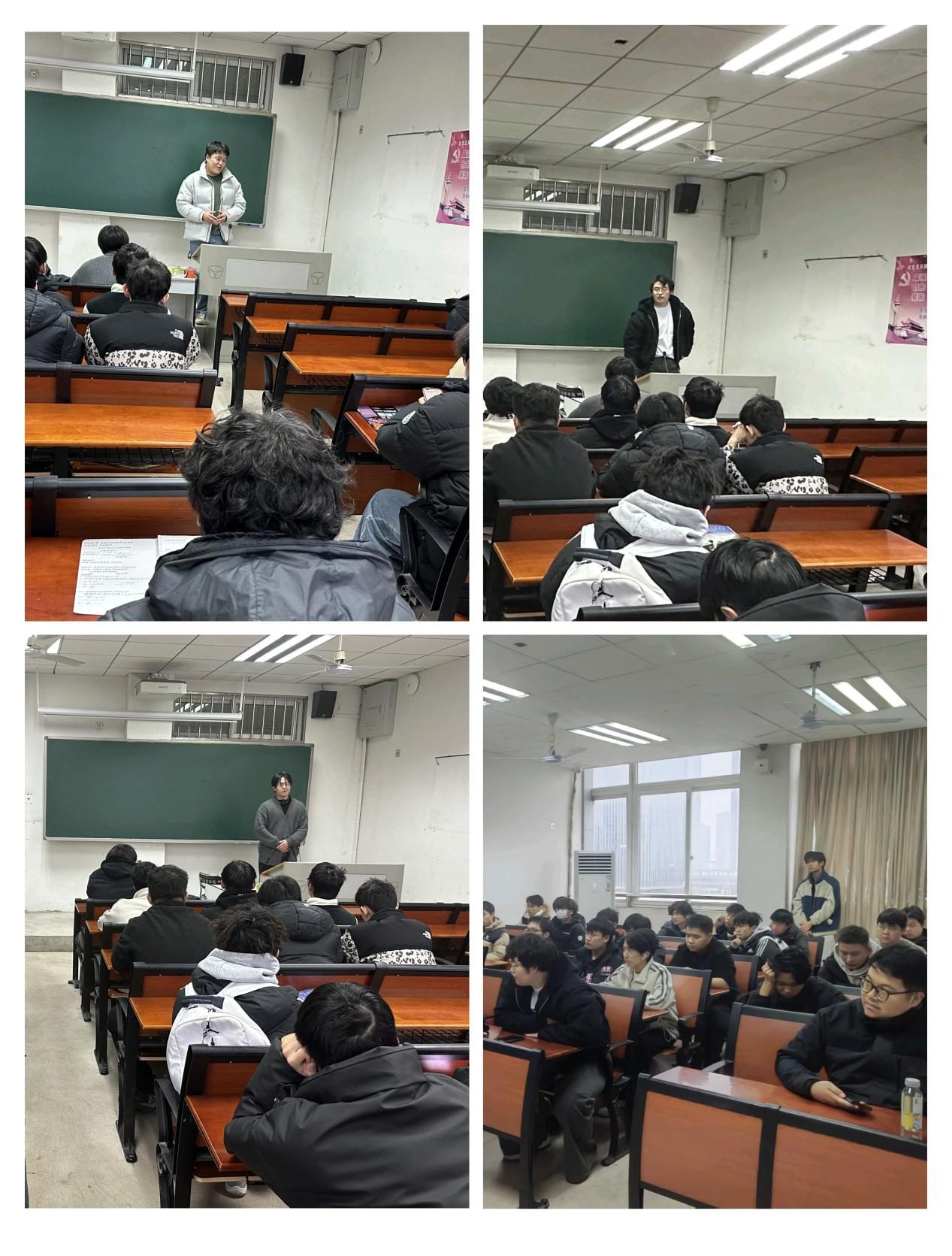12月27日,航海2303班于航海楼702教室召开强化学风考风暨优秀毕业学子交流分享主题班会。本次班会邀请周博文、洪鸣远、张超宇、黄靖等4位优秀学子与同学们面对面交流,旨在发挥朋辈引领作用,激励同学们向榜样看齐,营造优良考风学风、积极向上的学习氛围。航海2303班全体同学参加,班会由班主任袁志涛老师主持。