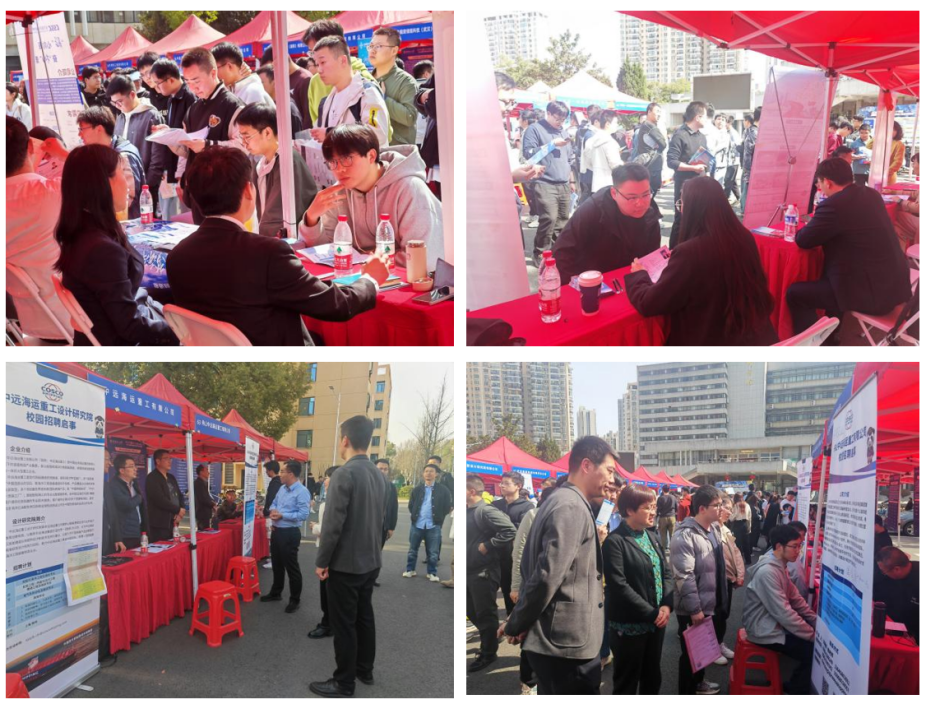 招聘会邀请了中远海运重工、长江航运集团、中船动力、上汽通用、江苏省港口集团等63家交通行业单位参会,其中,央企/国企40家,外资企业6家,多家科研单位、高等教育单位参与本次招聘会,活动现场氛围十分火热,毕业生们手持精心准备的简历,往来于各单位展位前,就工作内容、薪资待遇、招聘程序及要求等与用人单位进行交流,投递简历并参加现场资格审查和面试。本次双选会获得同学们的肯定和认可,参会学生纷纷表示:此次双选会在研究生入学考试之后,为很多学生提供了难得的春招就业岗位,拉进了毕业生与企业之间的距离,毕业生对行业或企业有更加全面的认识。