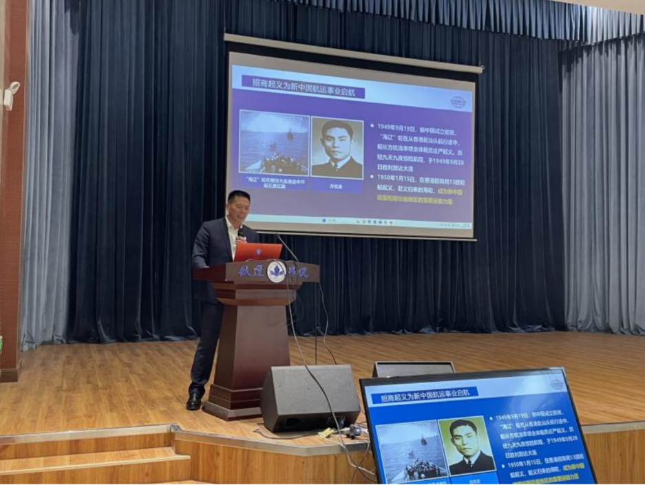 讲座中,汪家元副总经理围绕“波澜壮阔的历史激励我们坚守航运强国的战略选择、光辉壮丽的航程鼓舞我们坚守航运强国的伟大抱负、恢宏壮美的蓝图感召我们坚持海运成才的人生航向”三个方面展开。他从航海的起源到发展讲起,讲述了航海这一行业和国家航运事业的发展历程,鼓励同学们以持之以恒的学习、海纳百川的胸怀、脚踏实地的定力、战风斗浪的勇气面对未来挑战,希望同学们在百年圆梦的路上,像校歌所唱的那样,青春志图强,投身航海事业继承航海精神,迎接风浪洗礼,开创海洋强国的崭新时代。讲座最后,汪总经历结合自身的航海经历对中远海运海员广州分公司进行了简单介绍,希望同学们在即将到来的就业季可以加盟中远海运,为建设航运强国贡献智慧力量。