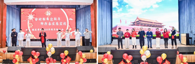 祥蛇献瑞,新元肇始。元月13日下午,学院在天象馆一楼报告厅隆重举办2025年“金蛇狂舞迎新年、踔厉奋发展宏图”新年联欢会。全体教职工及部分近三年退休老师、教职工家属和留校本研学生齐聚一堂,喜迎新春到来。