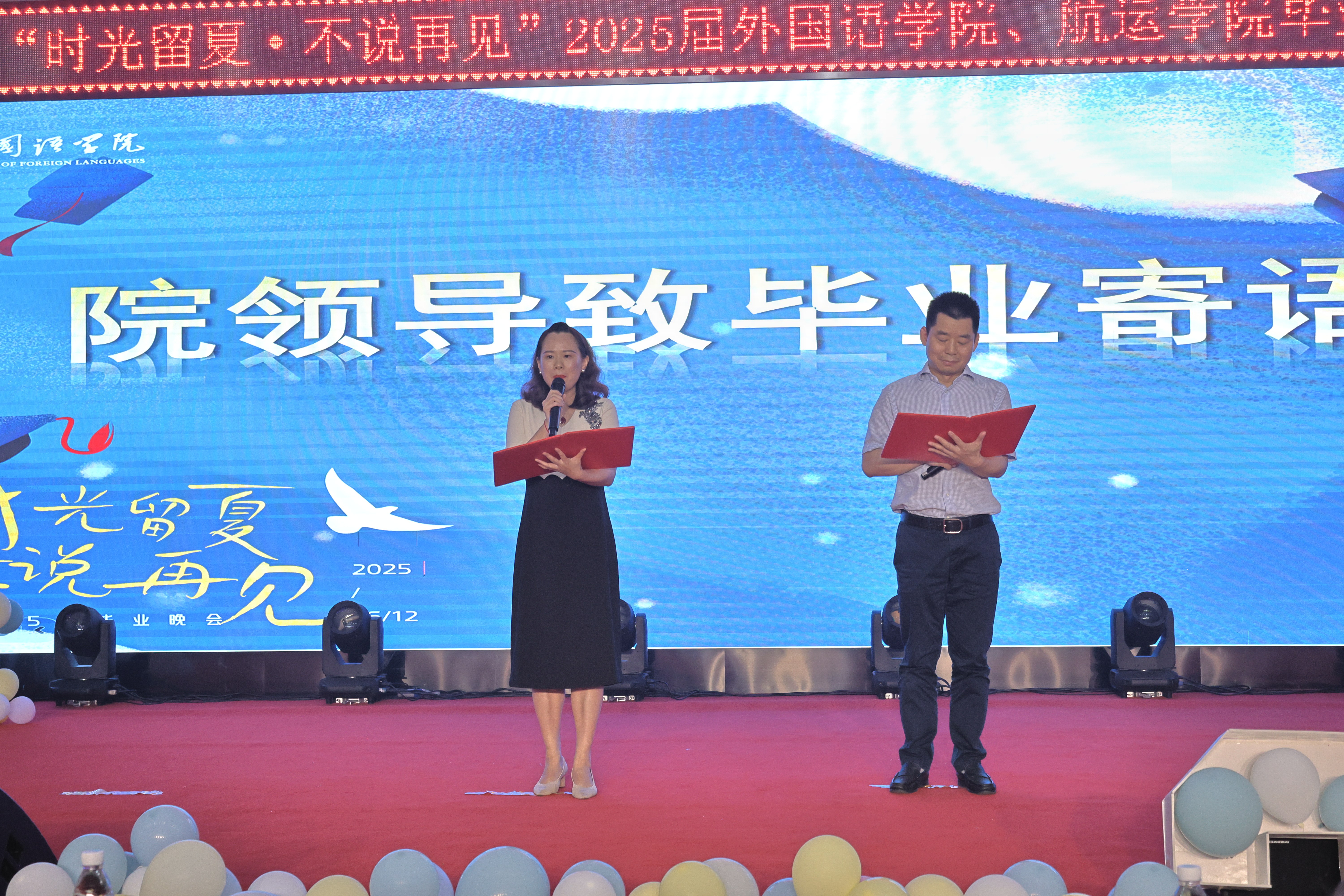 6月12日晚,成人影视片 与外国语学院联合开展2025届“时光留夏,不说再见”毕业晚会。校党委副书记夏江敬、两院领导、教师代表与全体毕业生参加,为毕业生们的大学旅程画上圆满句点。