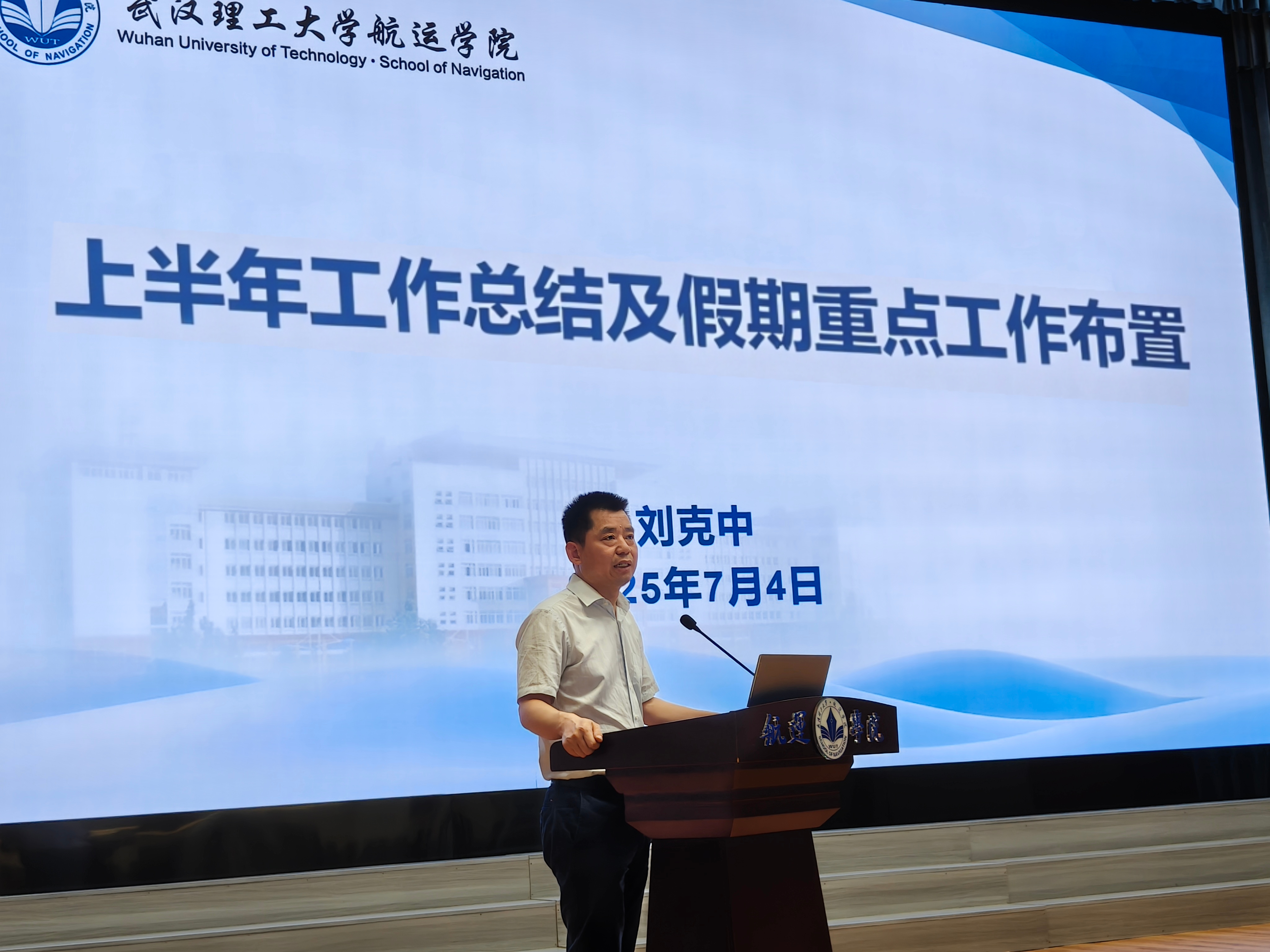 会上,院长刘克中全面总结2025年上半年工作,并部署暑期任务。他表示,在全体教职工的共同努力下,学院在党建引领、专业建设、青年人才引育、教学平台升级以及文化建设等方面取得一定成绩,学院治理效能得到进一步提升。下半年,学院将紧扣办学80周年活动、专业内涵建设、学生高质量就业等重点工作,全力推进年度任务与“十四五”规划目标落实。