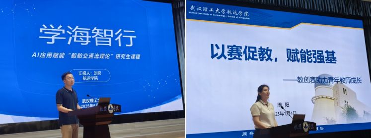 在经验分享环节,刘奕教授以《学海智行—AI应用赋能“船舶交通流理论”研究生课程》为题,分享AI技术融入教学的创新实践;周阳老师则围绕《以赛促教,赋能强基——教创赛助力青年教师成长》,讲述自己参加校、省青年教师教学竞赛的宝贵经验。此外,会议还介绍了新入职的5位教职工。