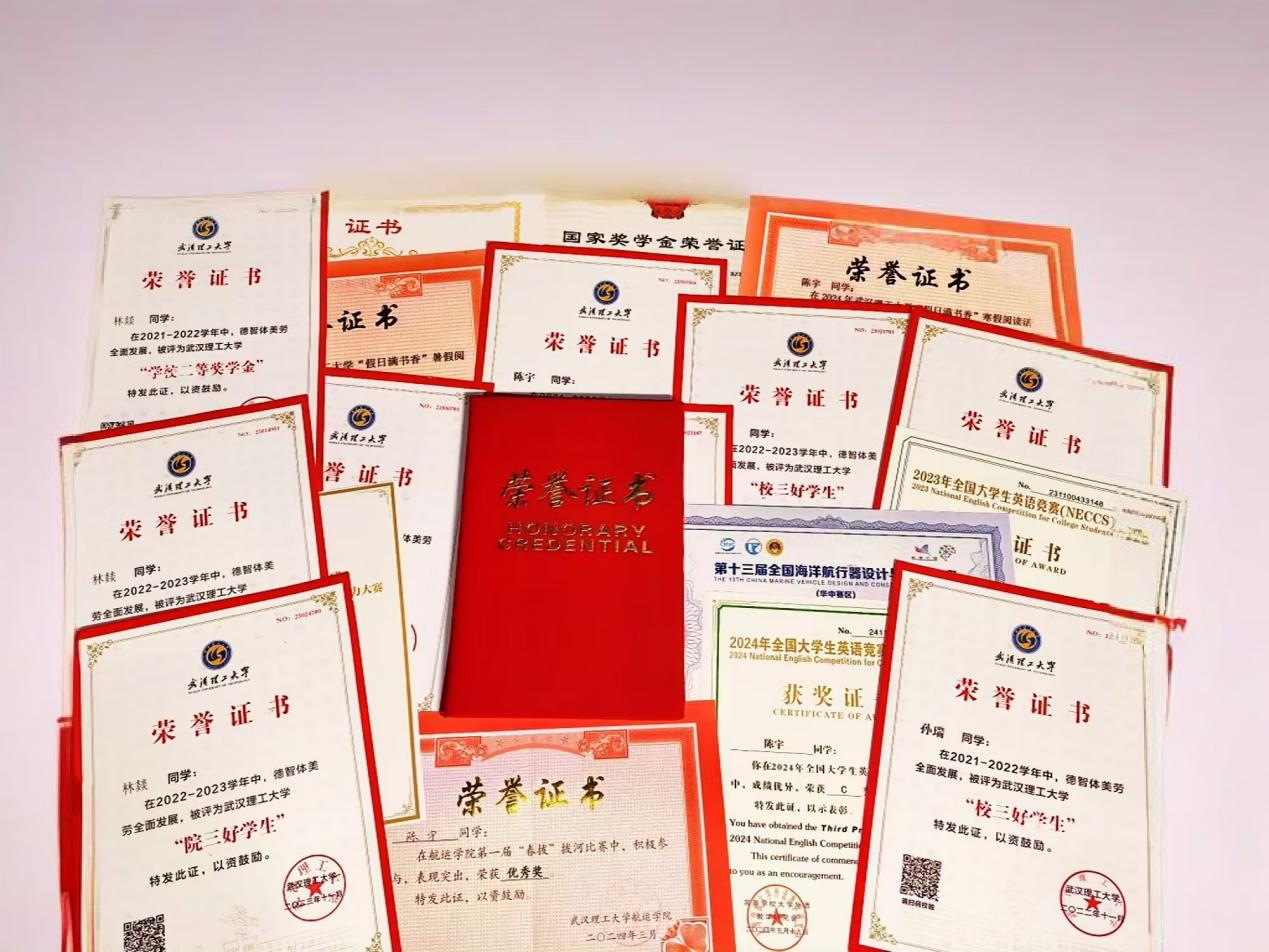奖学金及荣誉称号:学校奖学金、招商轮船奖学金、院三好学生等;