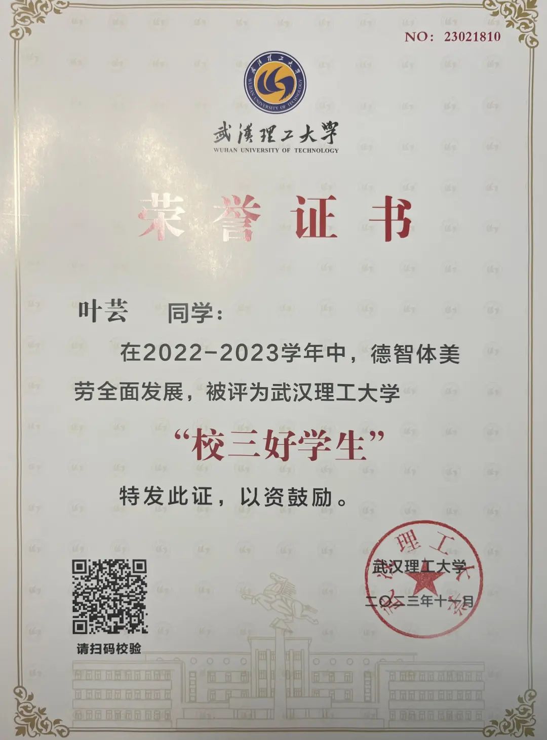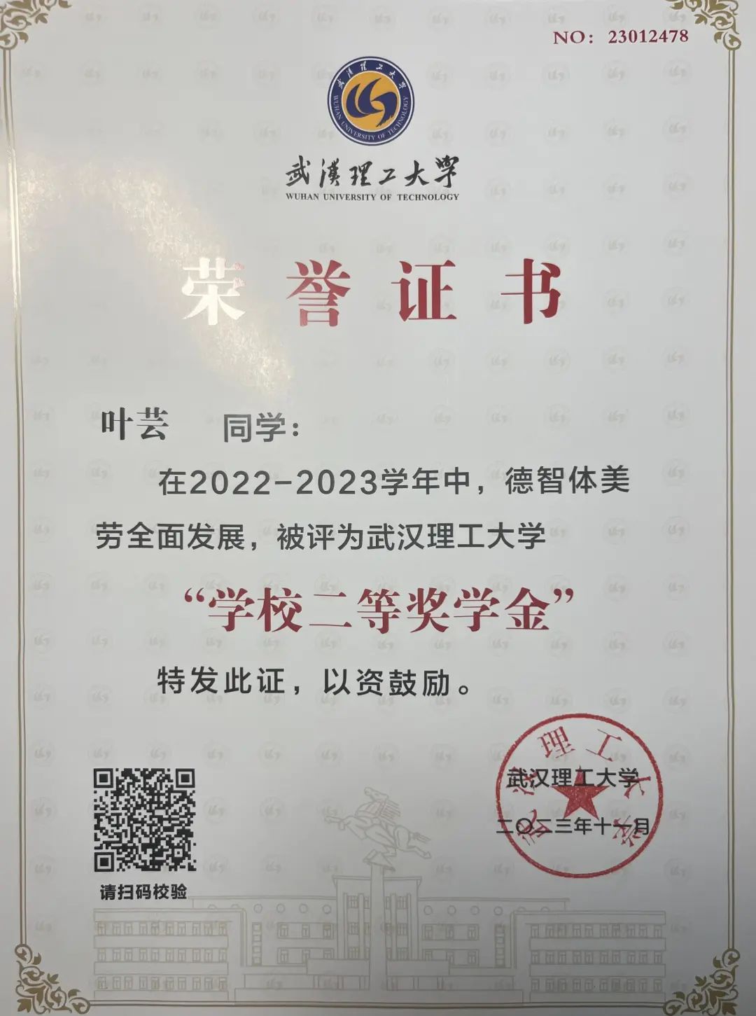 同时在课程学习中,叶芸坚持用系统思维学习,针对专业课程建立模块化知识体系,通过思维导图和多元案例深化理解,不断提升学习效率,深化对专业知识的理解。保持着对专业课程一贯的热情,她在大学期间获国家奖学金、校二等奖学金、校三好学生等荣誉称号。