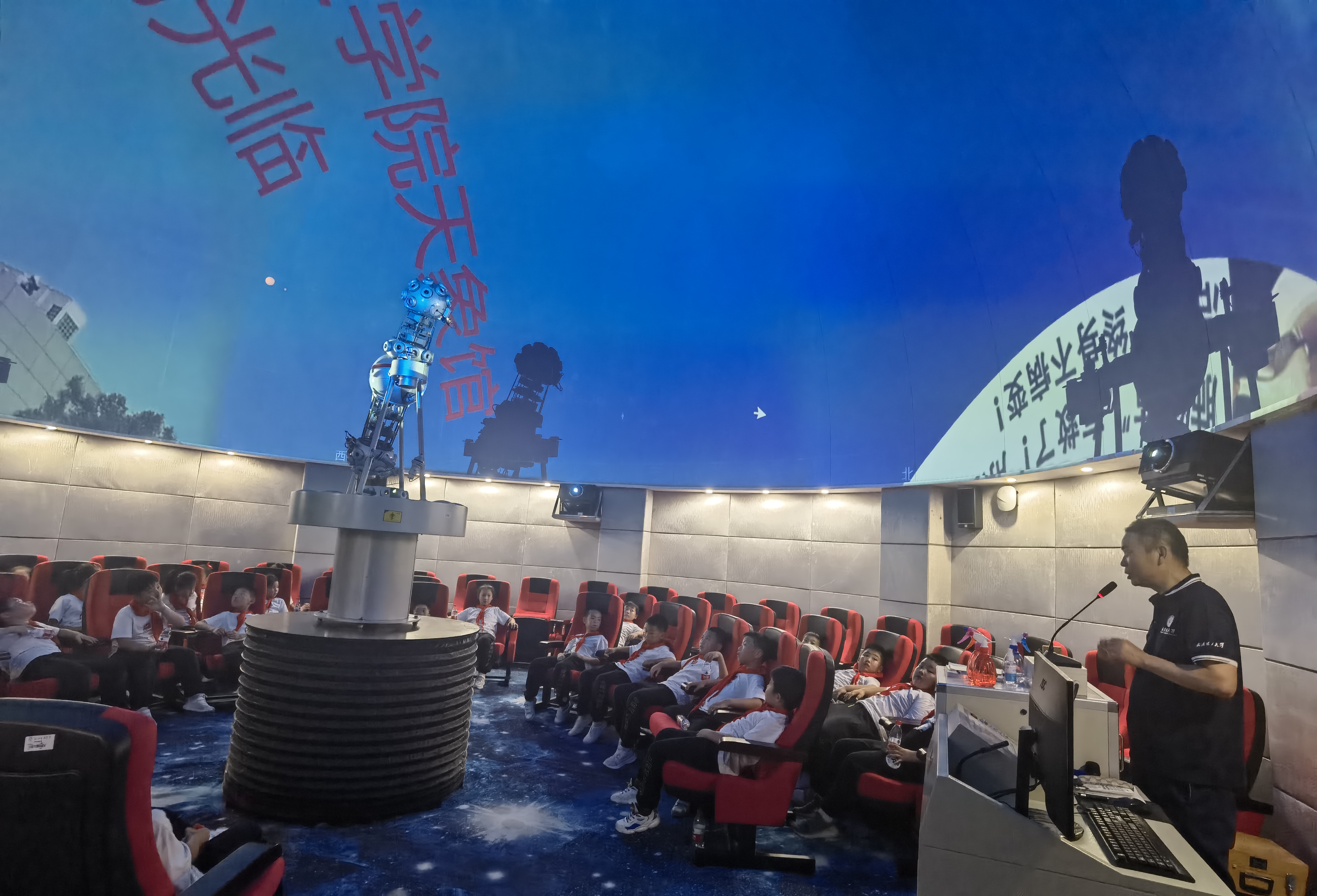 首先同学们参观了数字天象馆,成人影视片 翁建军教授通过数字天文模拟器向少先队员们展示了浩瀚的宇宙,通过带领同学们辨识星座、了解二十四节气等,引导同学们思考,引起同学们的广泛讨论,现场不断传出惊叹声和谈论声。随后同学们来到了全任务大型船舶操纵模拟器实验室,关宏旭老师向少先队员们详细地介绍了操纵模拟器的原理,驾驶台上各种仪器的用途以及各项指示灯的含义。少先队员们听得津津有味,不时发出惊叹。最后在关老师的指导下,少先队员们亲身上阵操作船舵,切身感受驰骋在海洋中的奇妙。